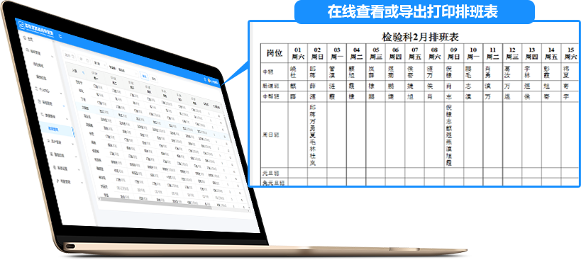 根据人员的岗位、班次设定,系统智能化自动排班,自动推送每位员工的上班日、节假日和休息日。